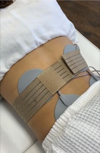 EMS sends electrical signals to muscles, causing them to contract like when you’re working out.